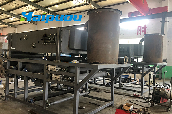 2、重力脫水段長(zhǎng),第一與第二重力脫水段總長(zhǎng)5m多,使污泥在壓榨前充分脫水失去流動(dòng)性。同時(shí),重力脫水段還設(shè)置反轉(zhuǎn)等特殊機(jī)構(gòu),經(jīng)“楔”形、“S”形壓榨等作用使污泥濾餅獲得低的含水量。